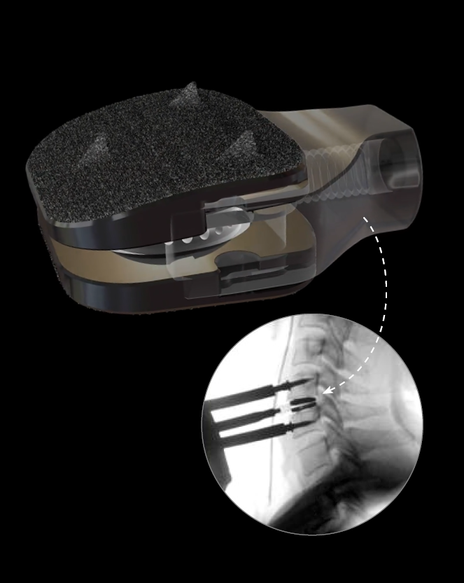 The radiolucent holder allows for both verification of the anterior position of the device and confirmation of the fitting accuracy. Thanks to this holder, the device is delivered pre-assembled for better handling.