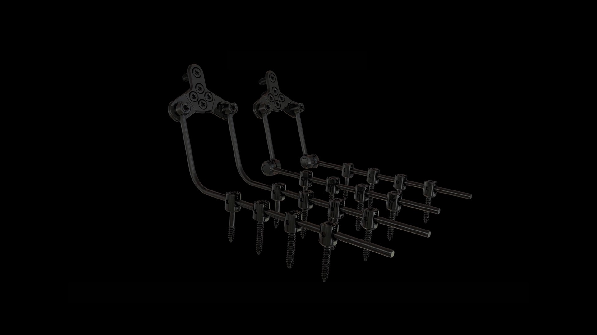 Para abordar todas las necesidades quirúrgicas hay disponible toda una variedad de tornillos, incluidos tornillos de ángulo variable con 60° de poliaxialidad, poliaxiales, de vástago liso, craneocaudales y mediolaterales.